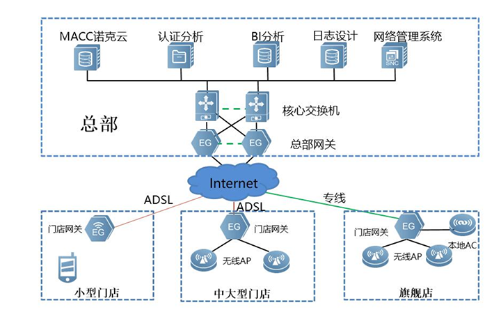 “新零售”一詞是在16年的雲栖大會(huì)上提出的。2017年被(bèi)稱爲“新零售元年”,是各類新零售業态和元素集中爆發(fā)的一年。随著(zhe)新零售概念的提出,市場上湧現出了越來越多的的新零售門店。業務的迅速擴張,對(duì)網絡的基礎架構和運維帶來了巨大的挑戰。初期并發(fā)開(kāi)店導緻的效率問題、人員出差的服務成(chéng)本、日常的運維壓力、非标準化帶來的架構、設備、配置不統一造成(chéng)的維護困難等等,一個良好(hǎo)的網絡基礎,在滿足客戶新零售體驗需求的同時(shí),也是對(duì)連鎖門店自身運營管理能(néng)力的改善。